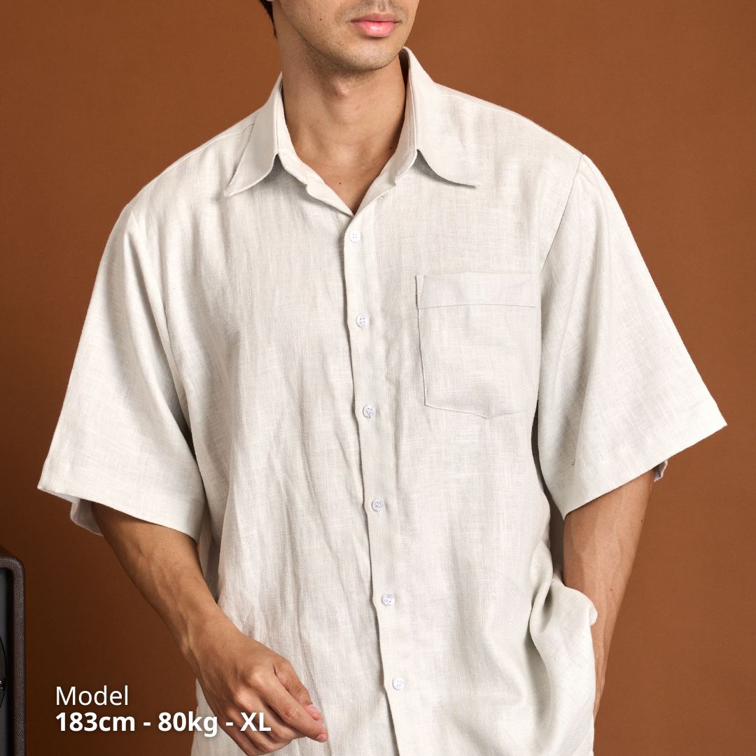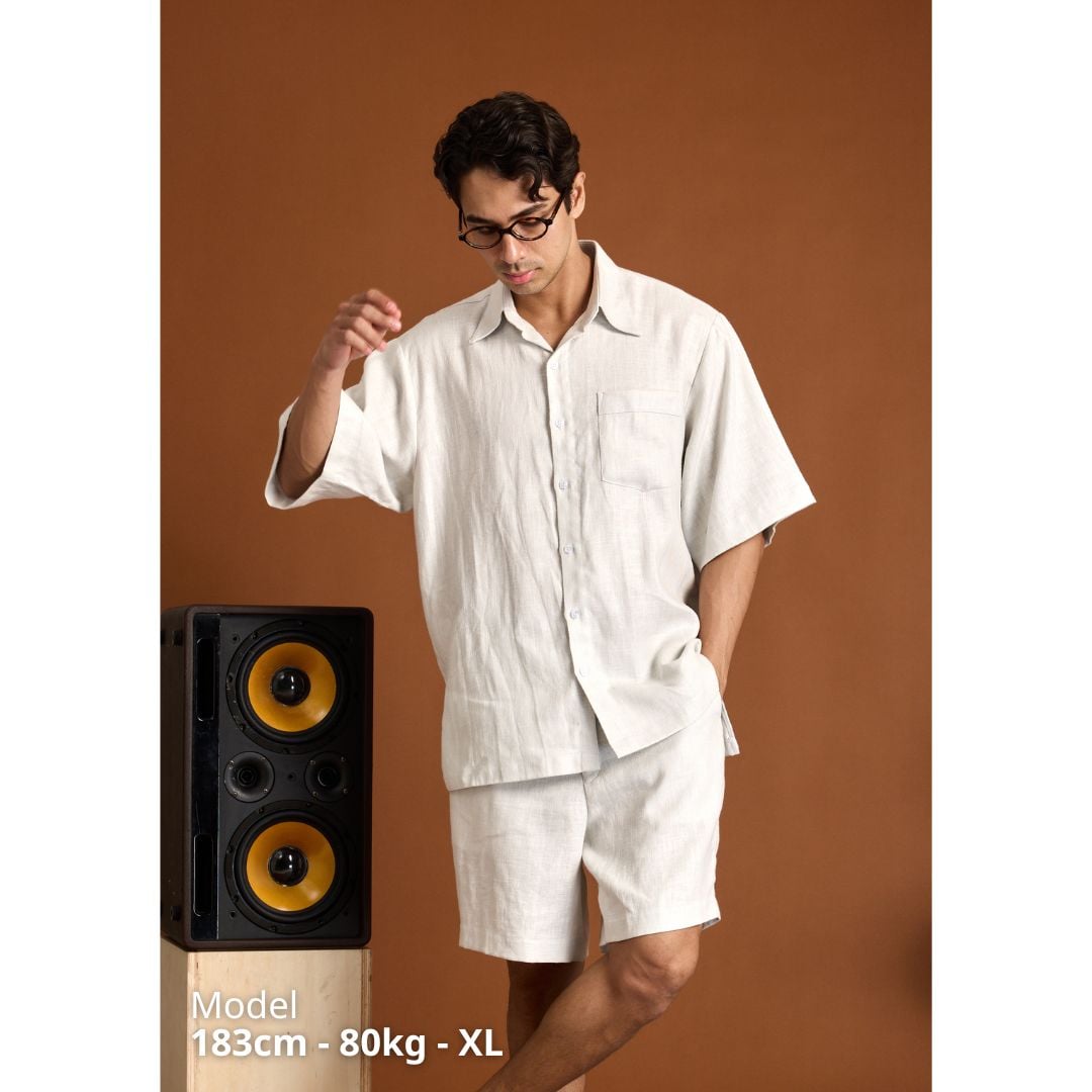 - Form rộng chuẩn nam – che khuyết điểm, tôn dáng: Dáng suông thoải mái, tay lỡ - ngang khuỷu che bắp tay, chiều dài vừa đủ để mặc ngoài hoặc sơ vin nhẹ. Phù hợp nhiều vóc dáng.