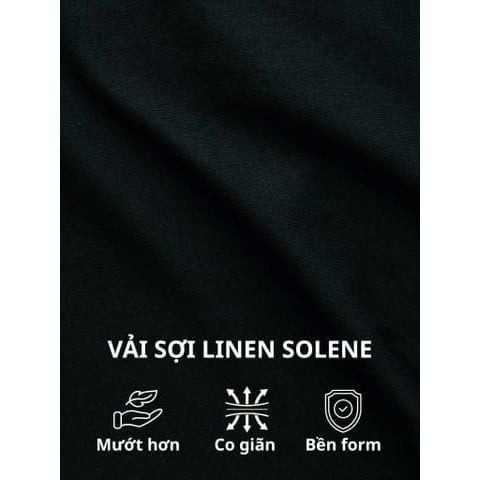 - Chất vải Linen Solene cao cấp – mát tay, ít nhăn: Linen pha rayon được xử lý dệt mịn cho cảm giác mềm nhẹ, thoáng khí, đứng form vừa đủ mà không thô cứng. Giảm nhăn lên đến 60% so với vải linen thông thường – mặc thoải mái cả ngày, không lo nhăn nhúm.