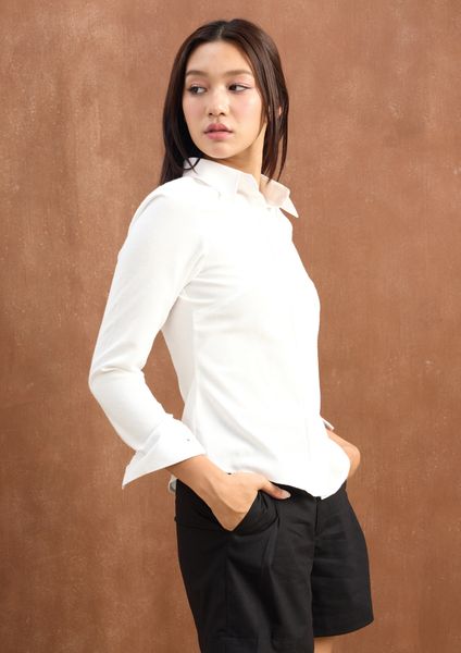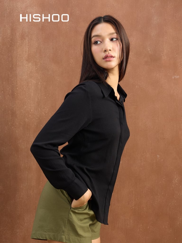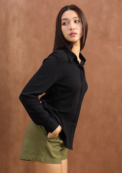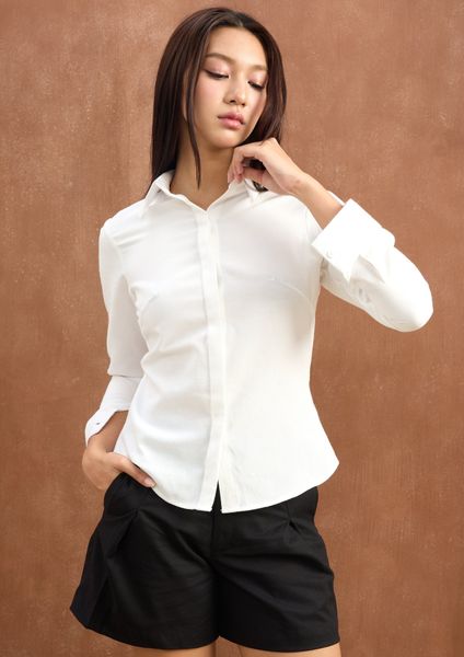 - Tay dài lịch sự, cài nút tinh tế: Dễ phối cùng quần tây, chân váy hay quần short cho đa dạng phong cách.