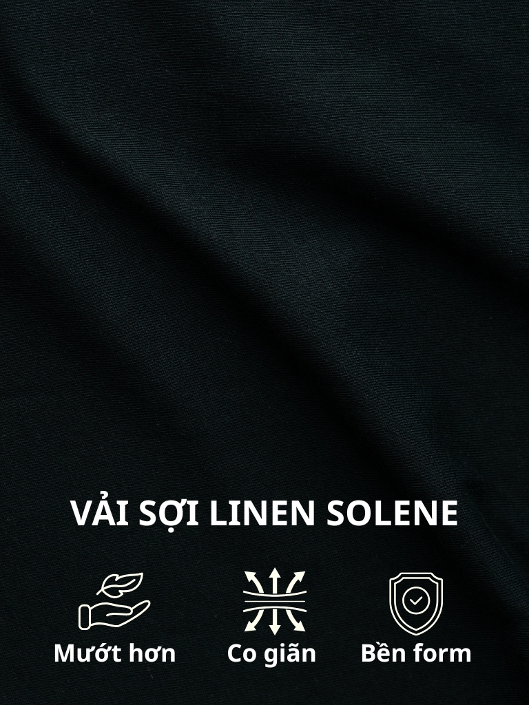 - Linen Solene cao cấp: Vải mềm mịn, thoáng khí, không bí bách, mặc lên nhẹ tênh – cực kỳ phù hợp với thời tiết Việt Nam.