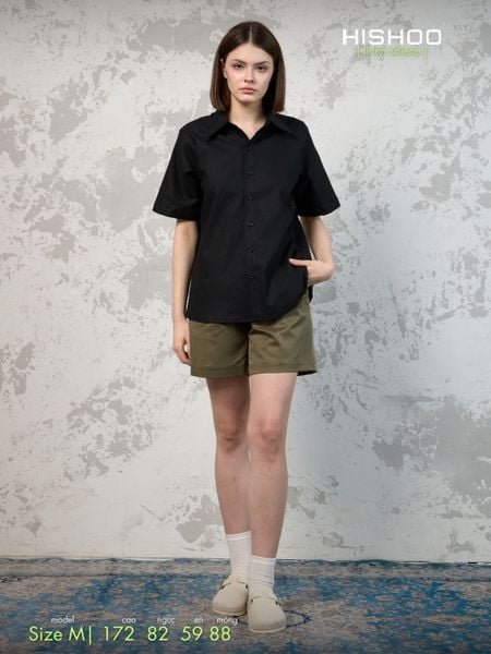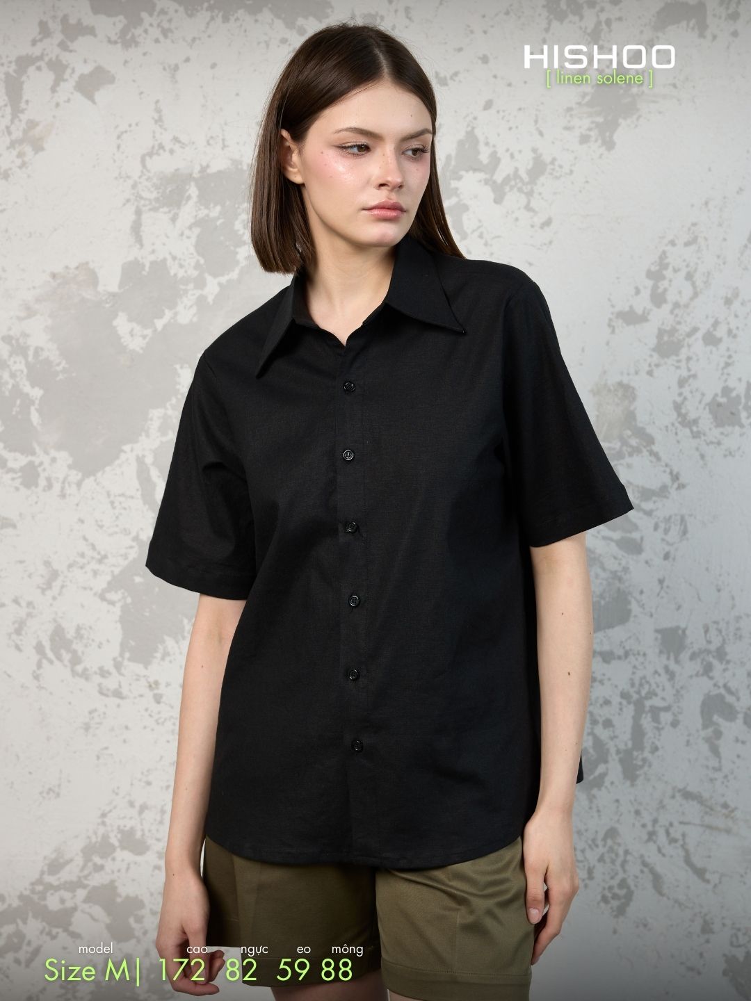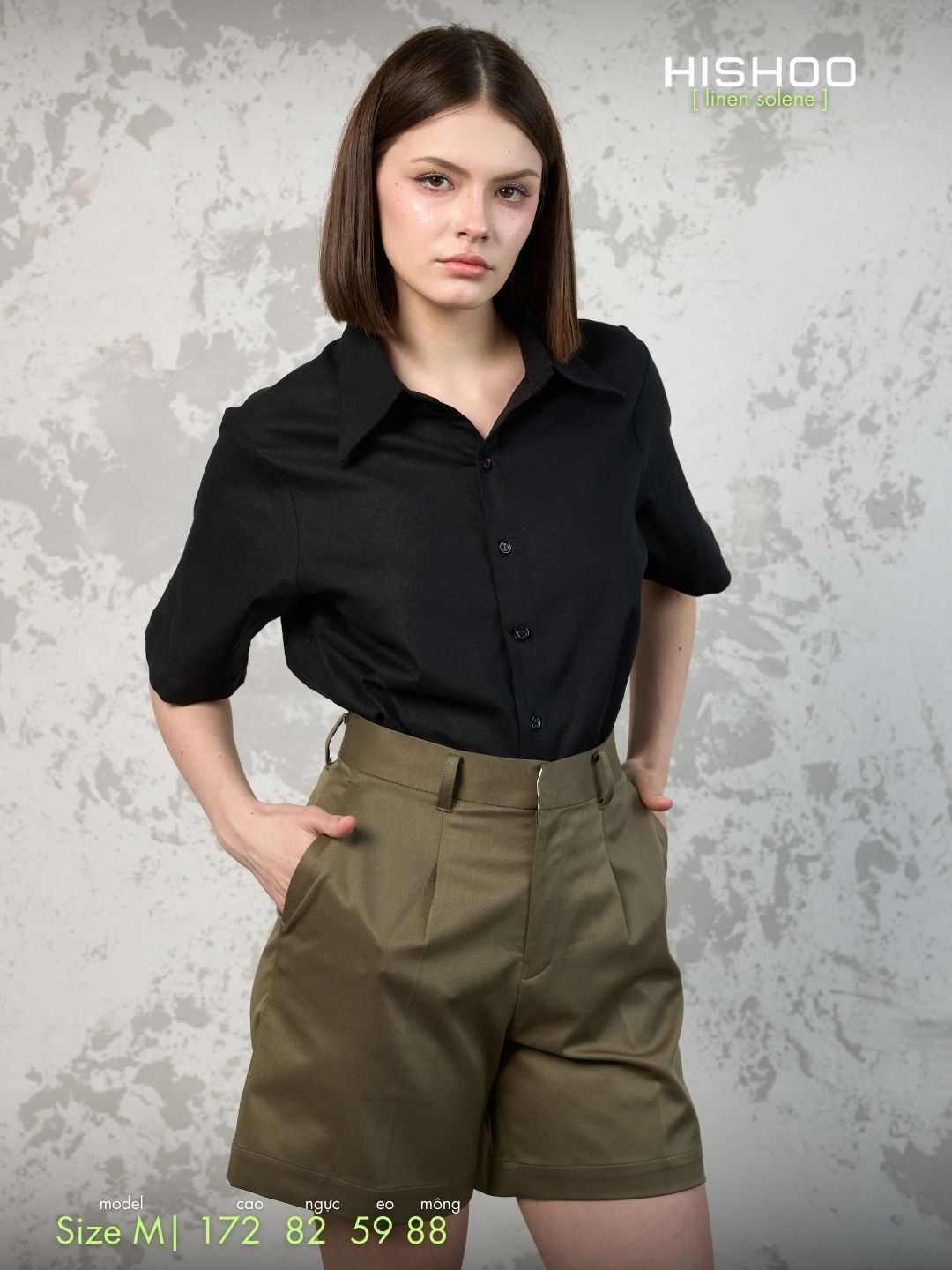 - Thiết kế: Tay ngắn, cổ bẻ, cài nút trước