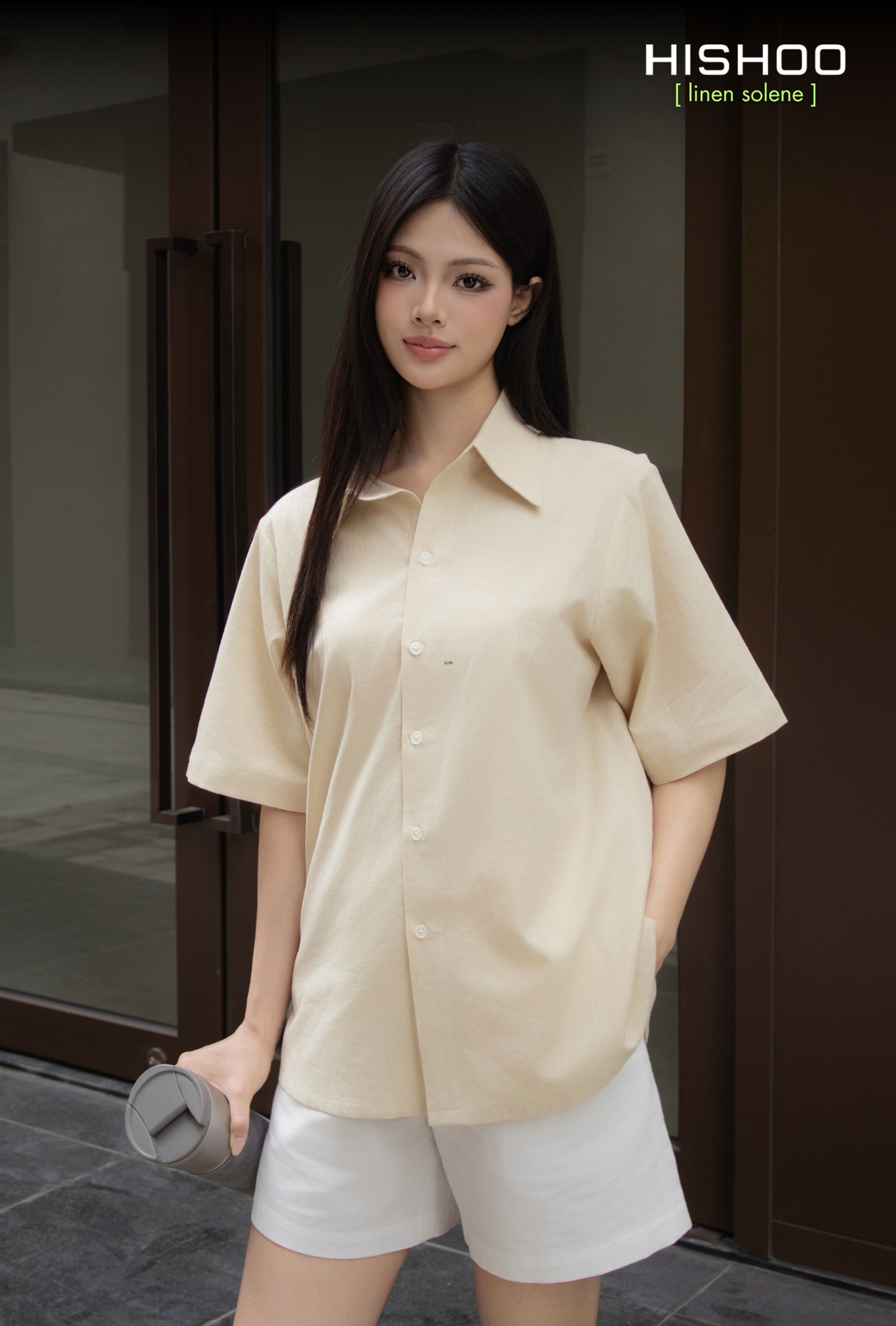 - Chất vải Linen Solene cao cấp – mát tay, ít nhăn: Linen pha rayon được xử lý dệt mịn cho cảm giác mềm nhẹ, thoáng khí, đứng form vừa đủ mà không thô cứng. Giảm nhăn lên đến 60% so với vải linen thông thường – mặc thoải mái cả ngày, không lo nhăn nhúm.