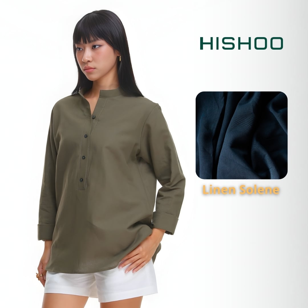 - Chất vải Linen Solene cao cấp – mát tay, ít nhăn: Linen pha rayon được xử lý thô cho cảm giác mềm nhẹ, thoáng khí, vừa đủ mà không thô cứng. Giảm lên nhăn nheo đến 60% nên vải lanh thông thường – mặc định thoải mái cả ngày, không lo nhăn nhúm.