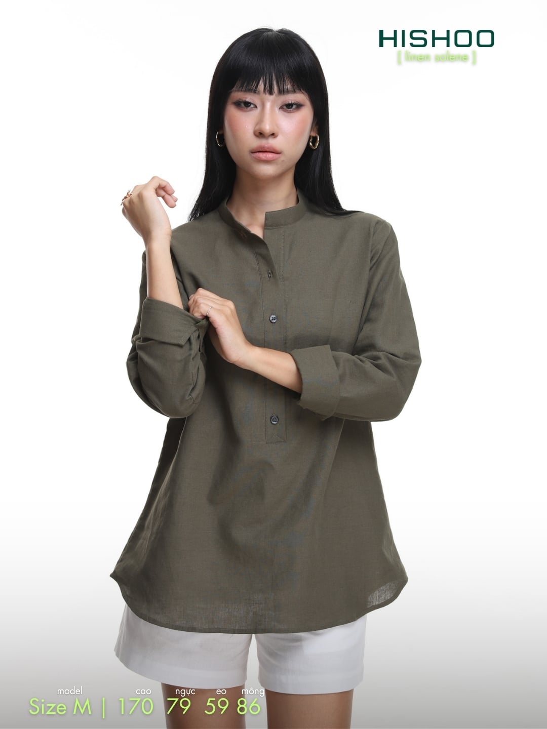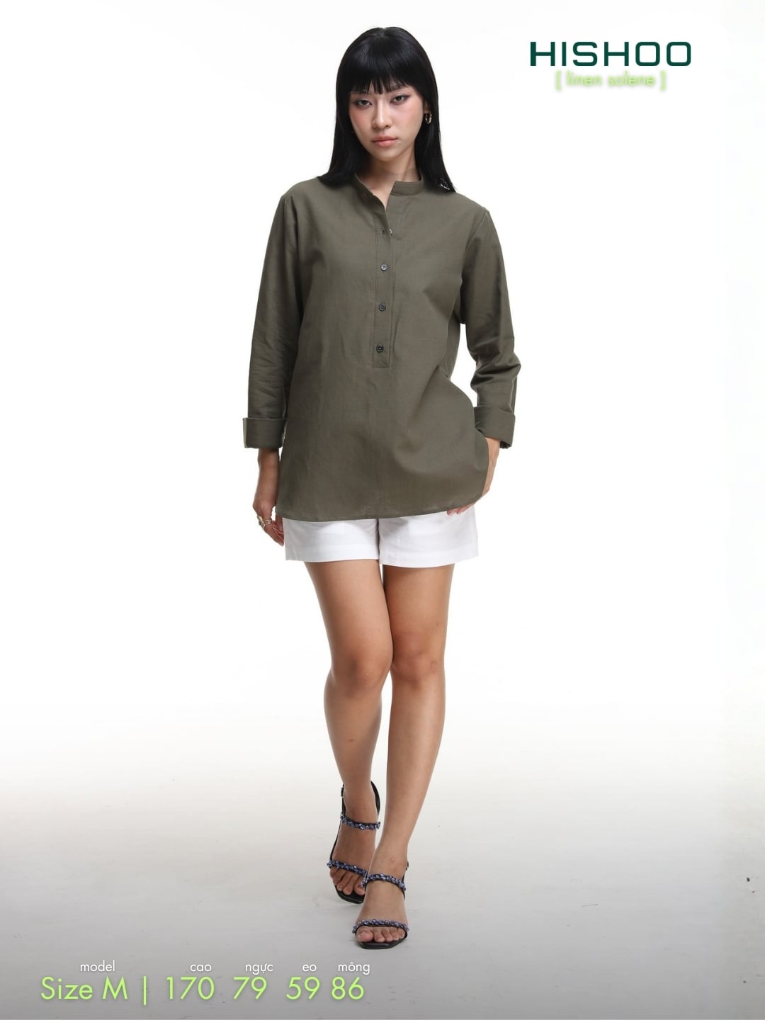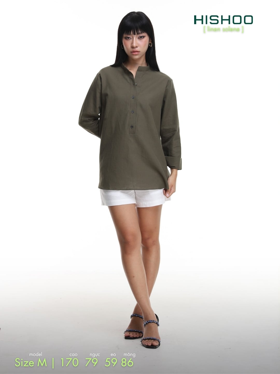 - Thiết kế thông thường đa năng: Áo cổ tàu vuông, cài nút tiện lợi trước, túi khí kiếm tạo điểm nhấn tinh tế – dễ dàng phối cùng áo thun trơn hoặc mặc đơn đều đẹp.