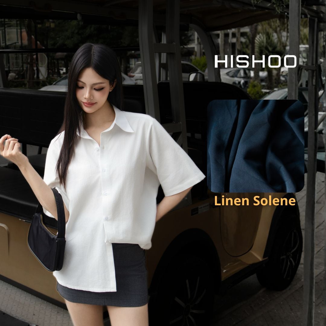 - Chất vải Linen Solene cao cấp – mát tay, ít nhăn: Linen pha rayon được xử lý dệt mịn cho cảm giác mềm nhẹ, thoáng khí, đứng form vừa đủ mà không thô cứng. Giảm nhăn lên đến 60% so với vải linen thông thường – mặc thoải mái cả ngày, không lo nhăn nhúm.