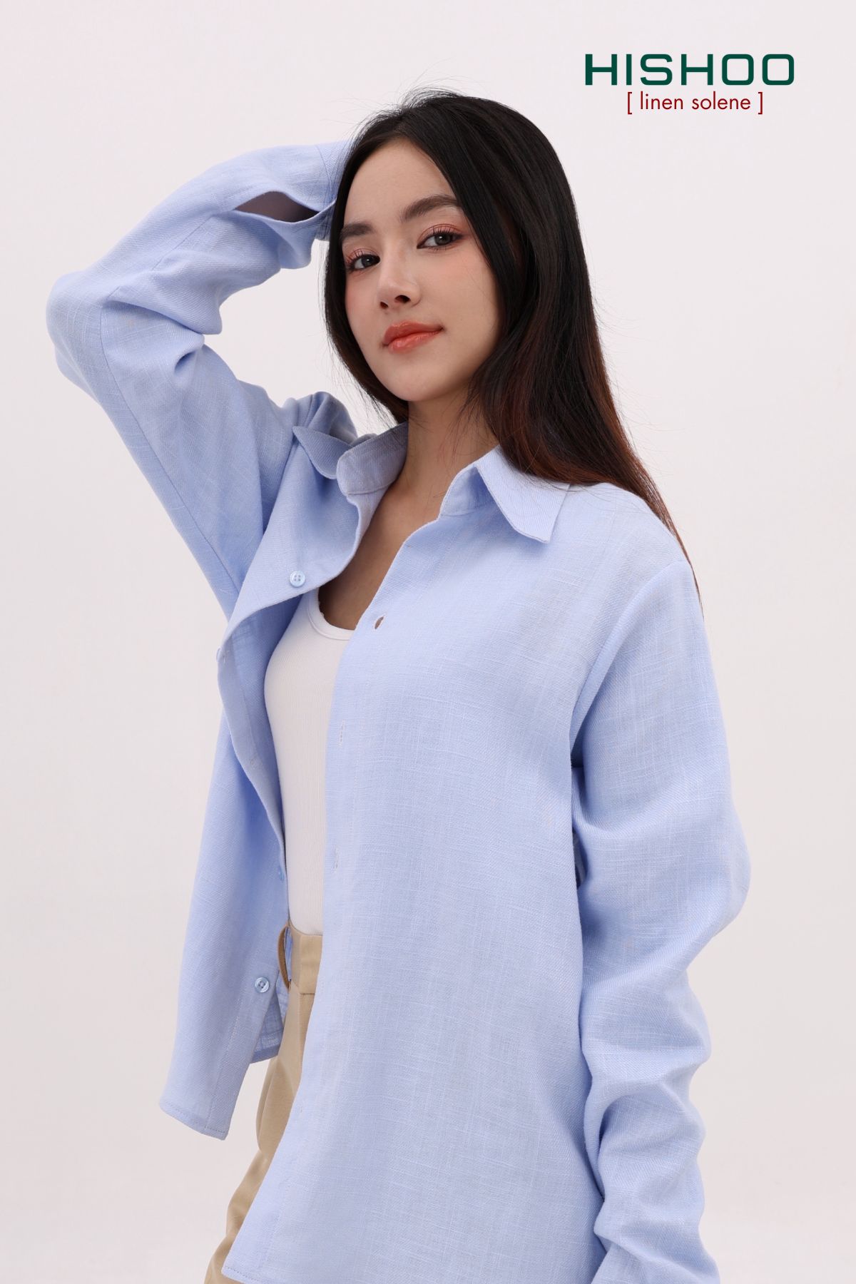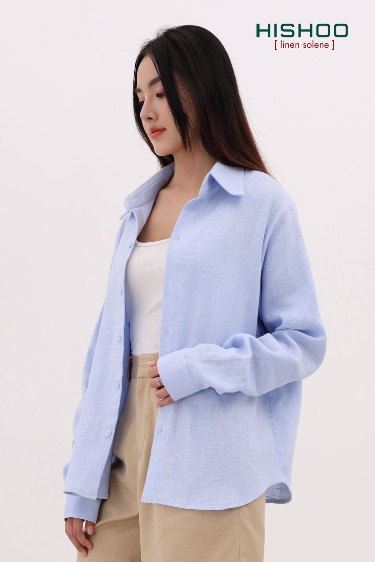 - Chất vải Linen Solene cao cấp – mát tay, ít nhăn: Linen pha rayon được xử lý dệt mịn cho cảm giác mềm nhẹ, thoáng khí, đứng form vừa đủ mà không thô cứng. Giảm nhăn lên đến 60% so với vải linen thông thường – mặc thoải mái cả ngày, không lo nhăn nhúm.