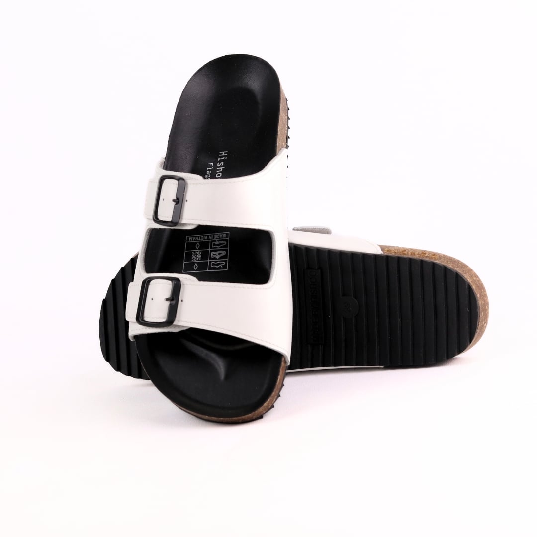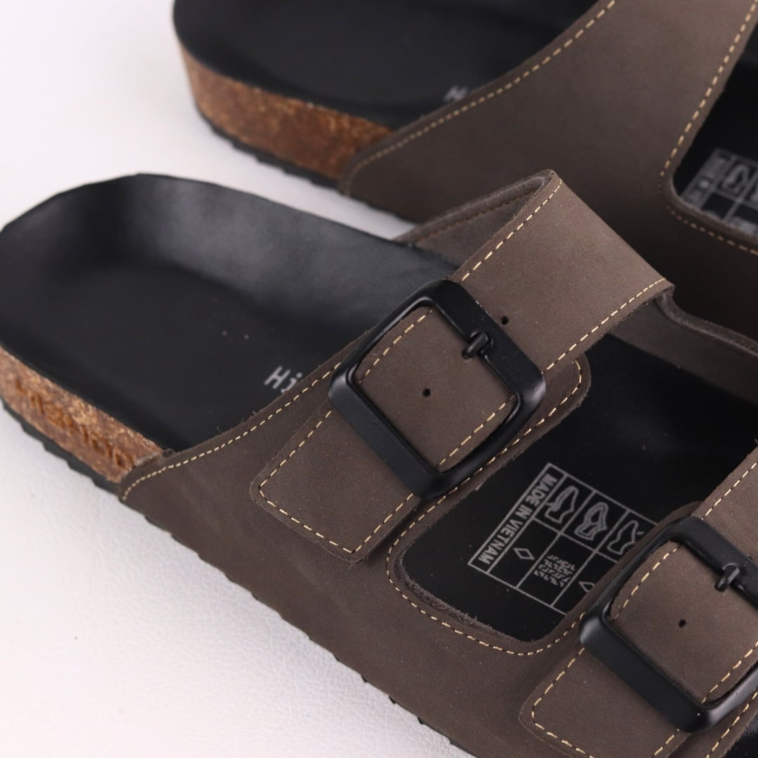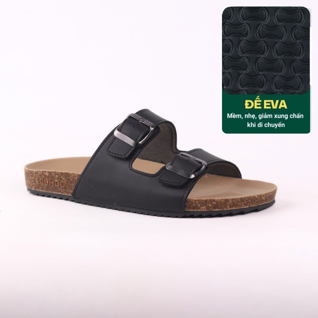 Dép đế trấu birken quai ngang 2 khoá MẶT ĐEN da bò HISHOO M093
