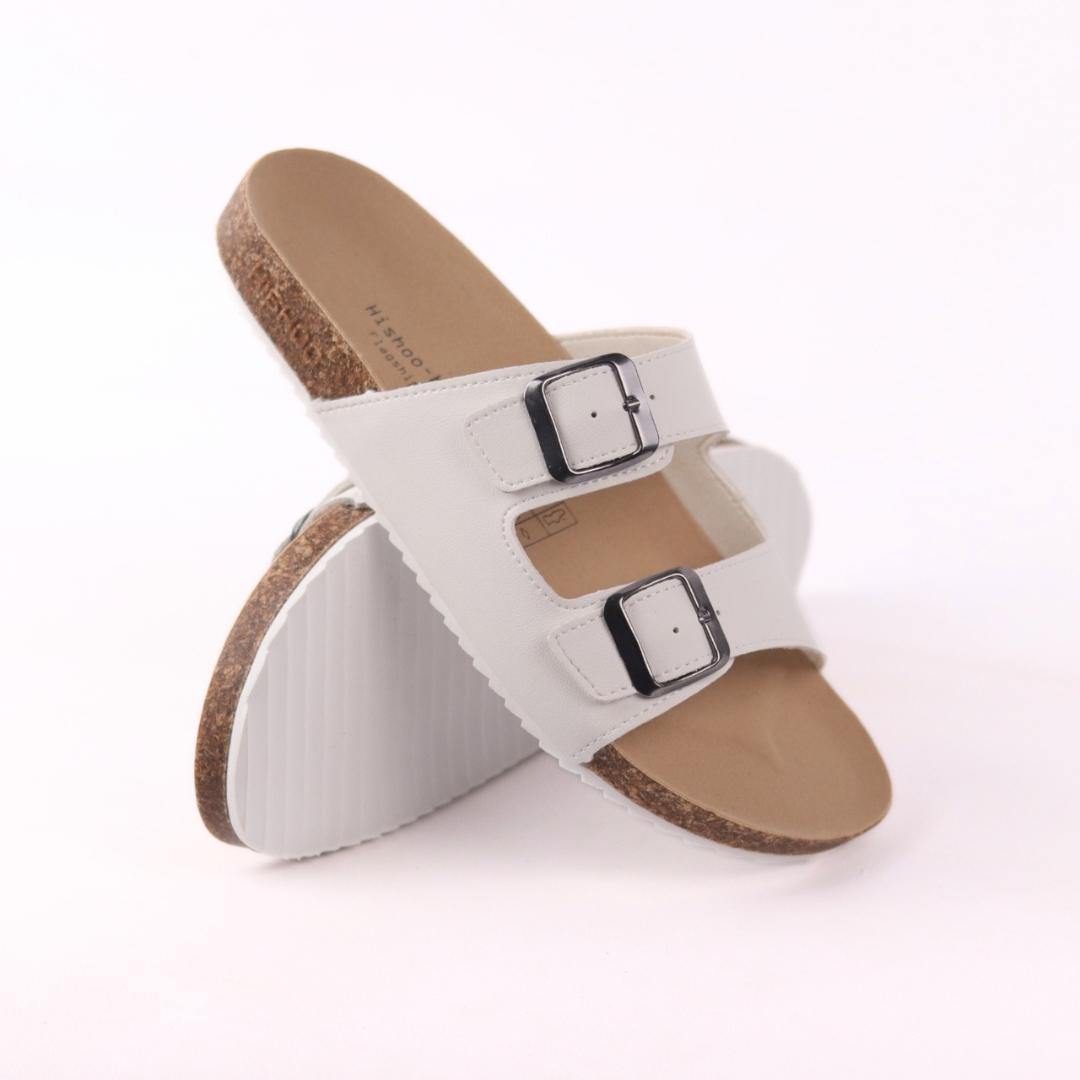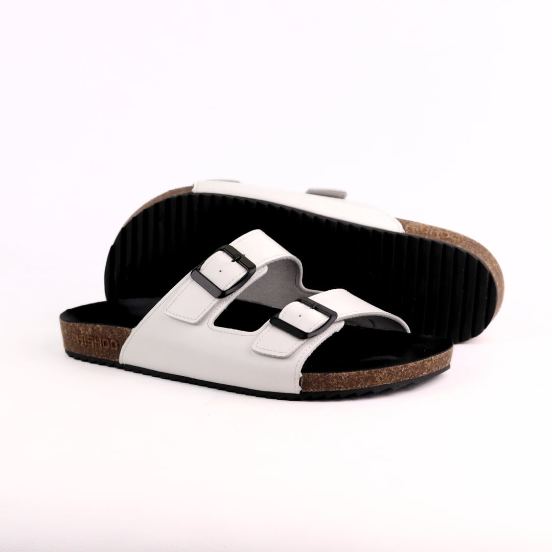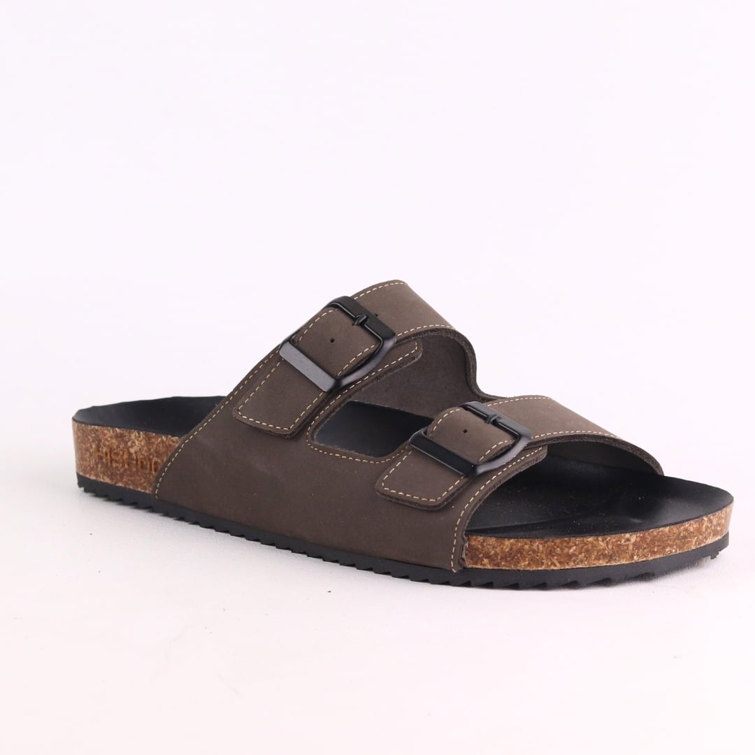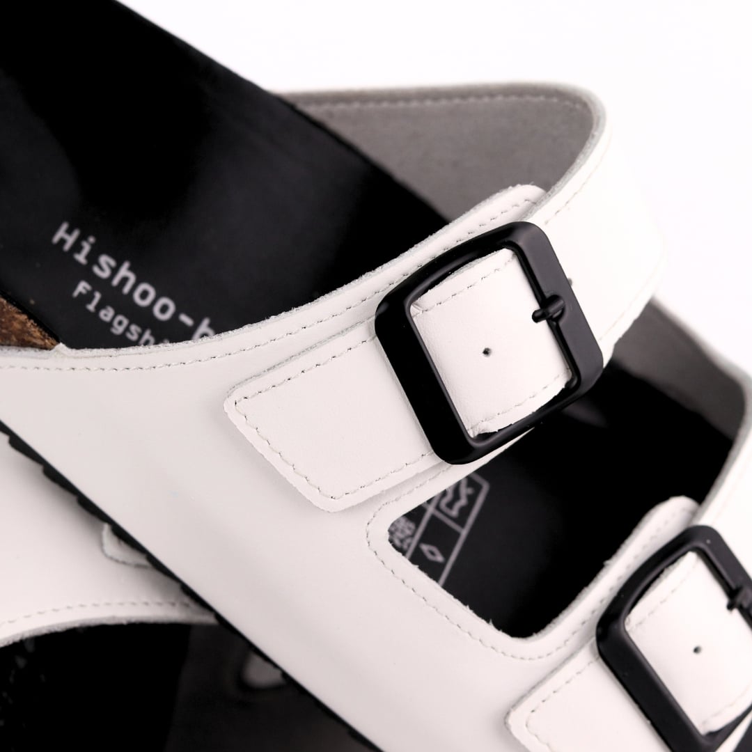 Dép đế trấu birken quai ngang 2 khoá MẶT ĐEN da bò HISHOO M093