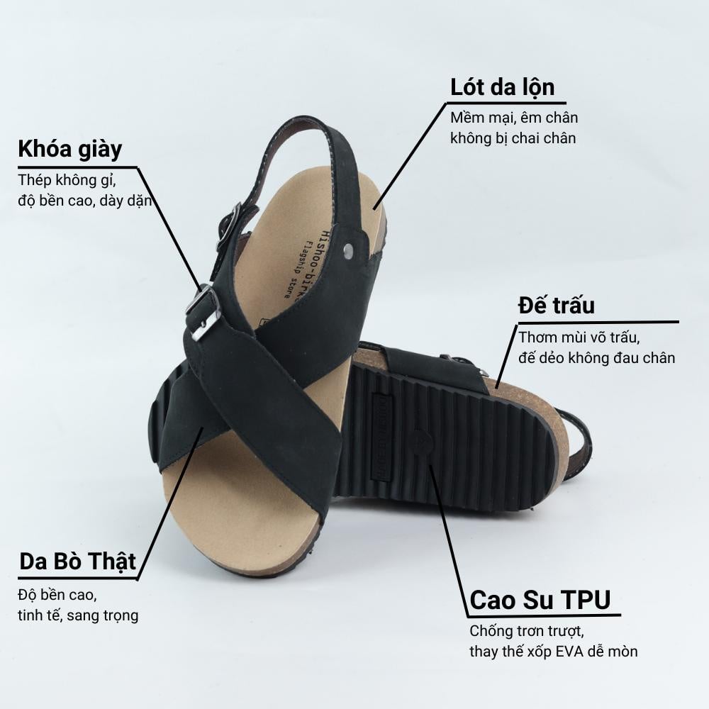 - QUAI DÉP: làm bằng chất liệu da bò Full gain leather/ PU hoặc suede cao cấp, giúp cho đôi dép của Hishoo trở nên sang trọng và đẳng cấp hơn. Khi bạn sử dụng đôi dép này, bạn sẽ không chỉ có được sự thoải mái và tiện lợi mà còn có thể tạo nên phong cách cá tính và thời trang cho bản thân.