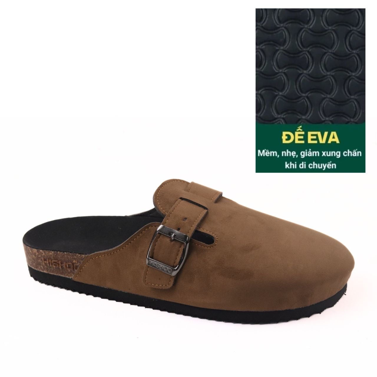 - ĐẾ TRẤU: Được sản xuất từ Vỏ Trấu và được kết hợp với keo để tạo ra một lớp đệm mềm mại và dẻo dai. Điều này giúp cho đôi dép của Hishoo có tính năng thoải mái và êm ái hơn so với các đôi dép khác trên thị trường.