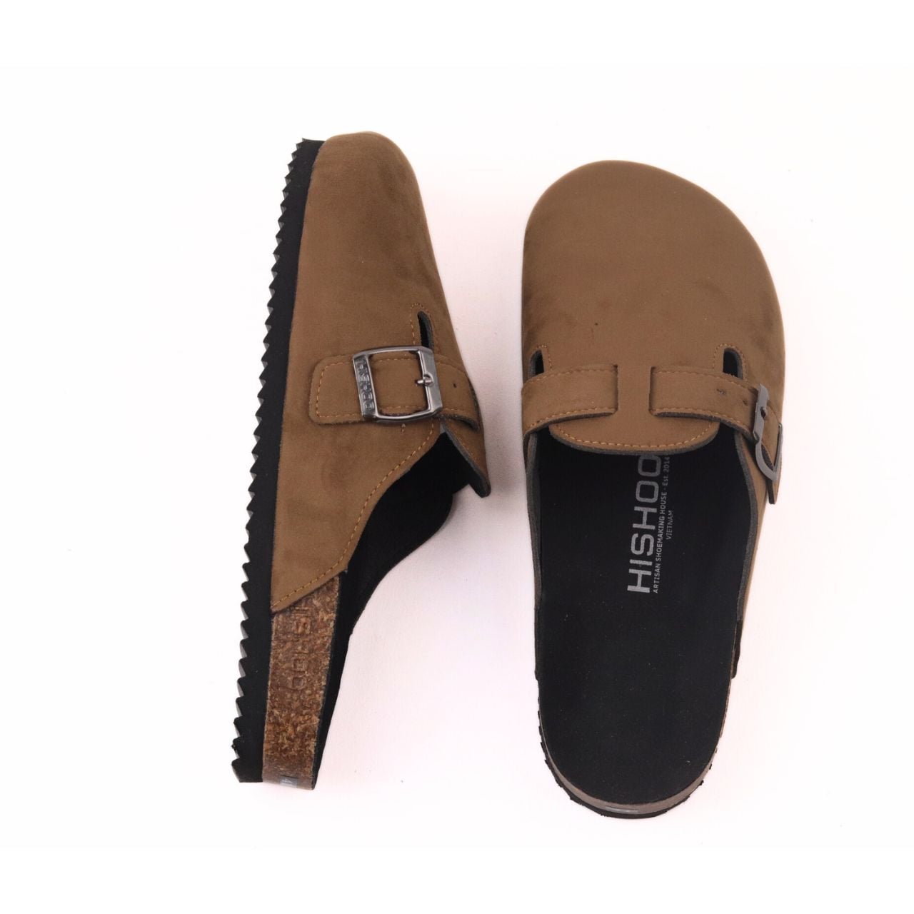 - MẶT LÓT DÉP: Được làm bằng chất liệu suede, một loại da bò lộn mềm mại và êm ái. Đây là vật liệu lý tưởng để làm lót dép vì tính năng thoáng khí và không gây chai chân. Khi đi dép đế trấu của Hishoo, bạn sẽ cảm thấy như đang đi trên những đám mây êm ái