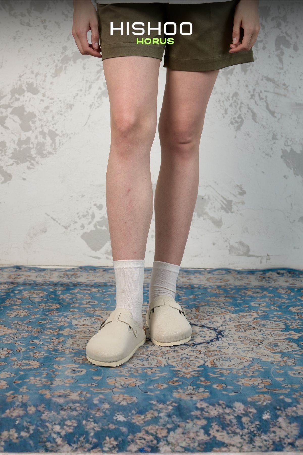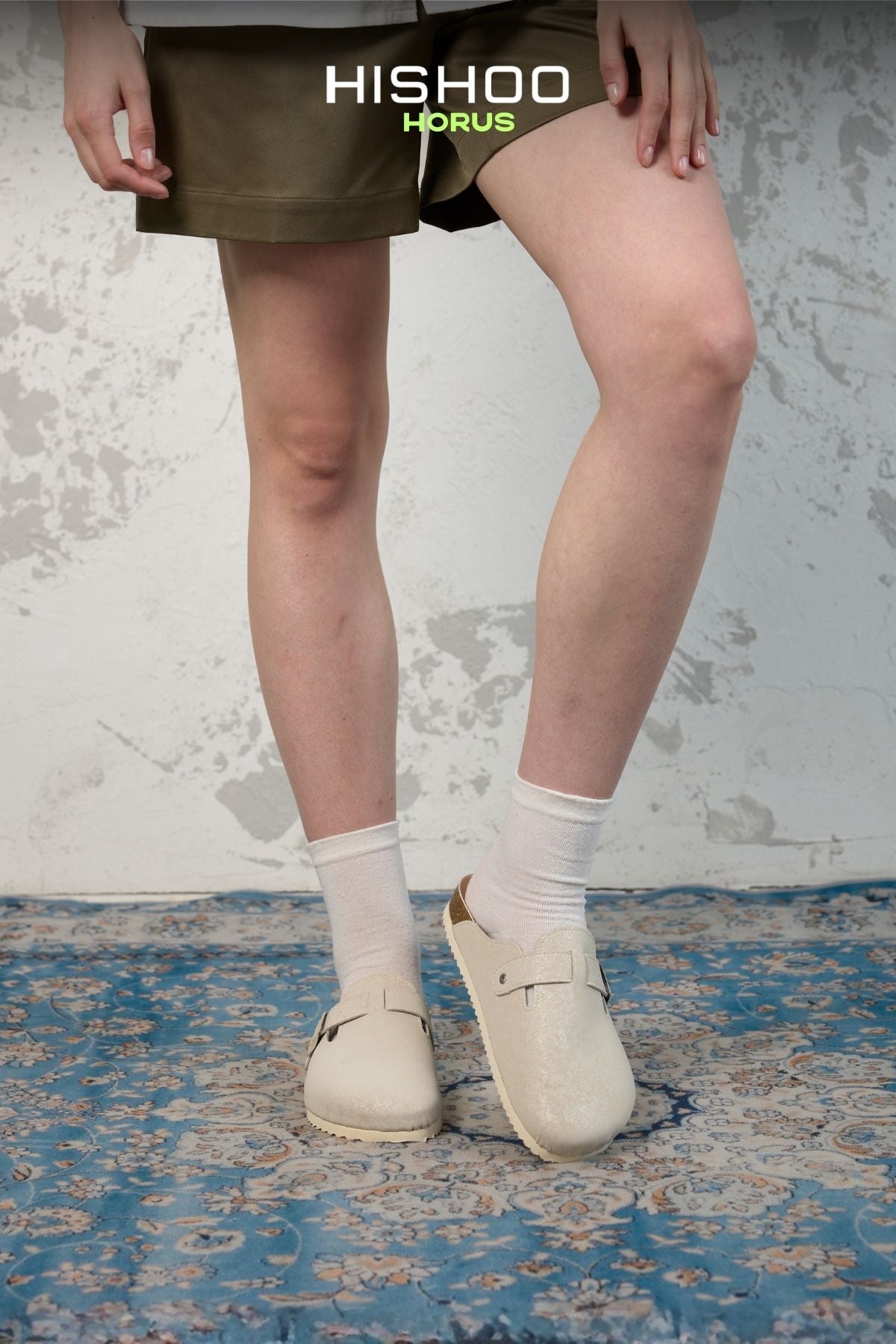 - MẶT LÓT DÉP: Được làm bằng chất liệu suede, một loại da bò lộn mềm mại và êm ái. Đây là vật liệu lý tưởng để làm lót dép vì tính năng thoáng khí và không gây chai chân. Khi đi dép đế trấu của Hishoo, bạn sẽ cảm thấy như đang đi trên những đám mây êm ái