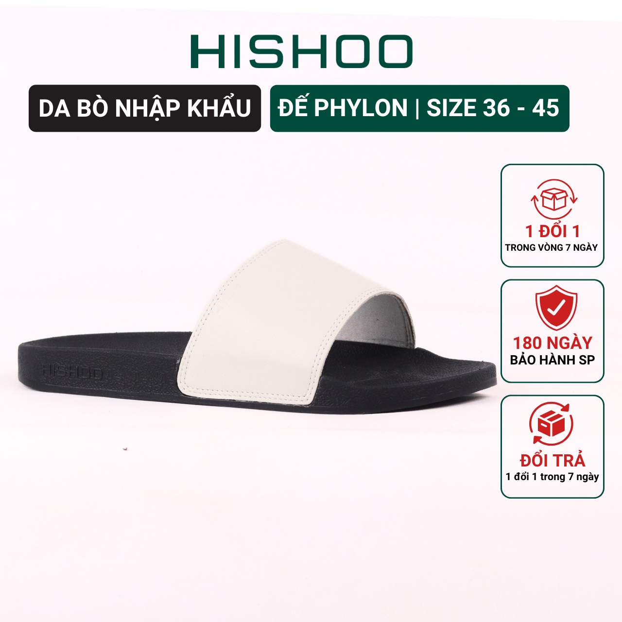 - PHẦN QUAI: được làm bằng DA BÒ THẬT, mềm mại và êm ái, giúp người sử dụng cảm thấy thoải mái khi đi dép. Xử lý công nghệ SmellBlock* giúp HẠN CHẾ HÔI CHÂN. Đặc biệt, quai dép của Hishoo được thiết kế vừa vặn với đôi chân, không gây khó chịu hay hằn sâu vào da chân, giúp cho người sử dụng có thể di chuyển một cách dễ dàng và thoải mái.