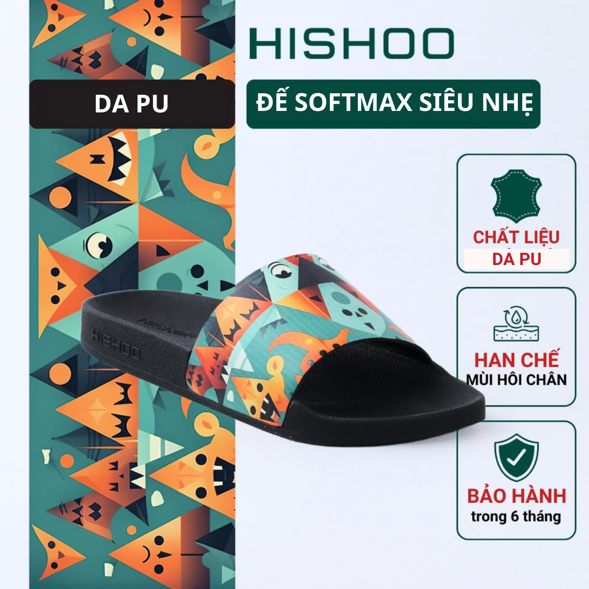 - PHẦN QUAI: được làm bằng DA PU, mềm mại và êm ái, giúp người sử dụng cảm thấy thoải mái khi đi dép. Xử lý công nghệ SmellBlock* giúp HẠN CHẾ HÔI CHÂN. Đặc biệt, quai dép của Hishoo được thiết kế vừa vặn với đôi chân, không gây khó chịu hay hằn sâu vào da chân, giúp cho người sử dụng có thể di chuyển một cách dễ dàng và thoải mái.