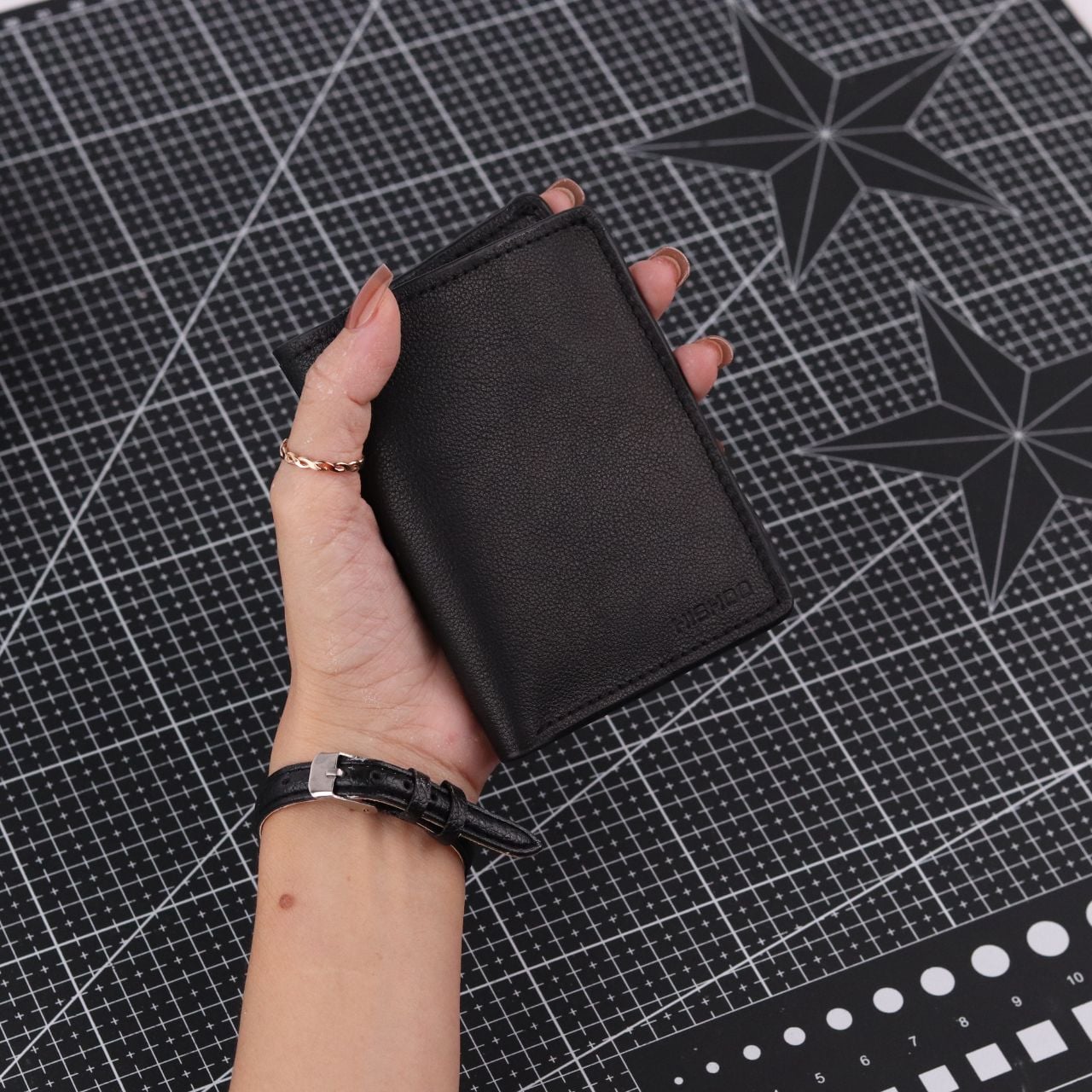 Ví Da Dáng Đứng Nam Nữ Đựng Thẻ [ĐEN] Alpha Da Bò Phụ Kiện Hishoo V004 KHUYẾN MÃI - ƯU ĐÃI